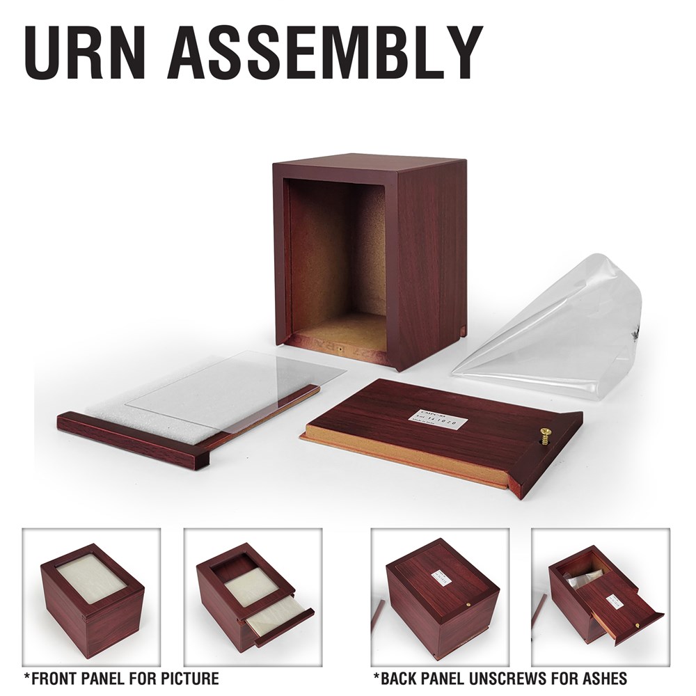 • Features a sliding panel compartment that holds your pet’s ashes. Use a screwdriver to access the storage compartment.