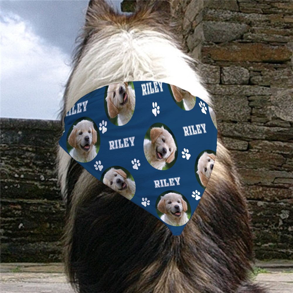Your furry friend will look fabulous sporting our Personalized Photo & Name Repeat Pet Bandana.