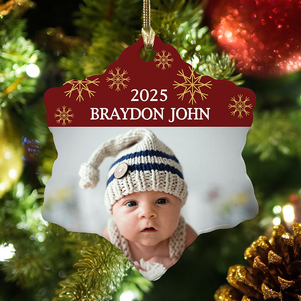 Celebrate special moments with our Personalized Photo And Year Snowflake Ornament. Add your favorite picture, the year, and a name for a truly unique keepsake. Ideal for marking milestones like baby’s first Christmas, engagements, or memorable vacations.