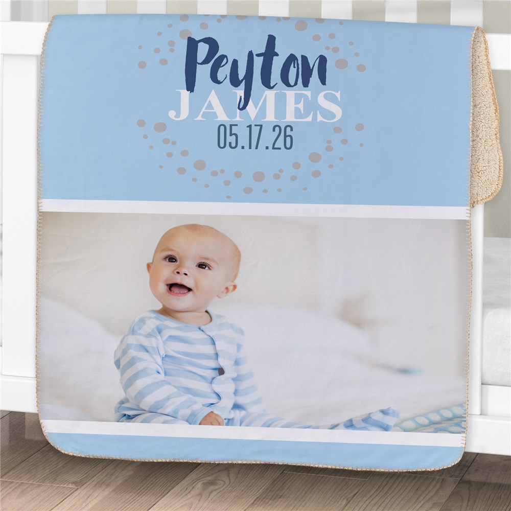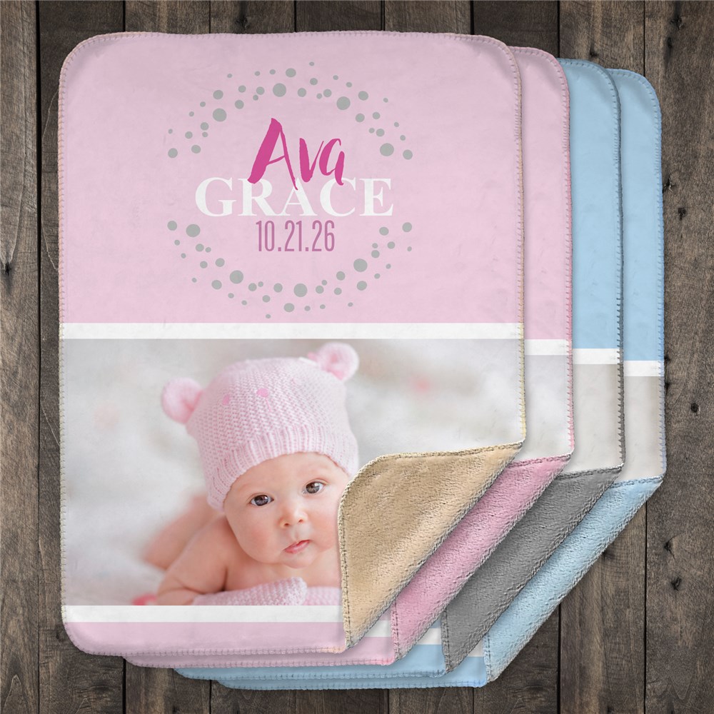 Our soft sherpa Personalized Baby Photo Blanket is perfect for the newest addition to your family. We will custom personalized with any photo, first name, middle name and any date. Personalized baby blankets like this one makes a perfect gift for expecting parents or gift for a new baby!