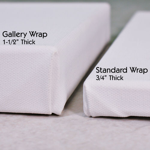 • We offer a standard wrap which is 3/4" thick or a gallery wrap which is 1.5" thick.