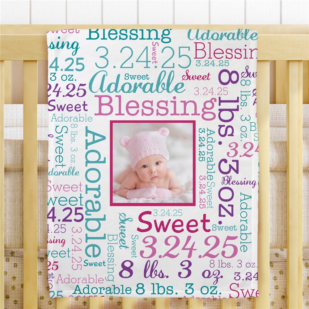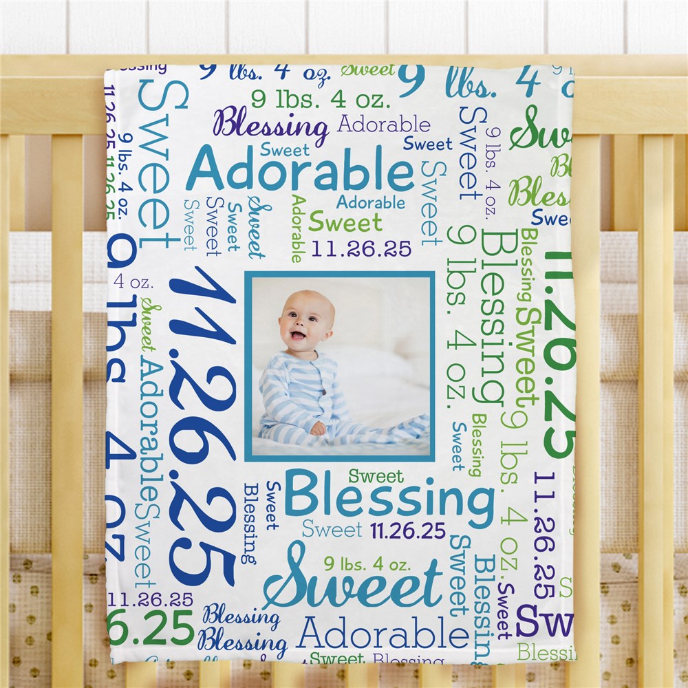 Personalized Photo Word-Art Fleece Blanket for Baby