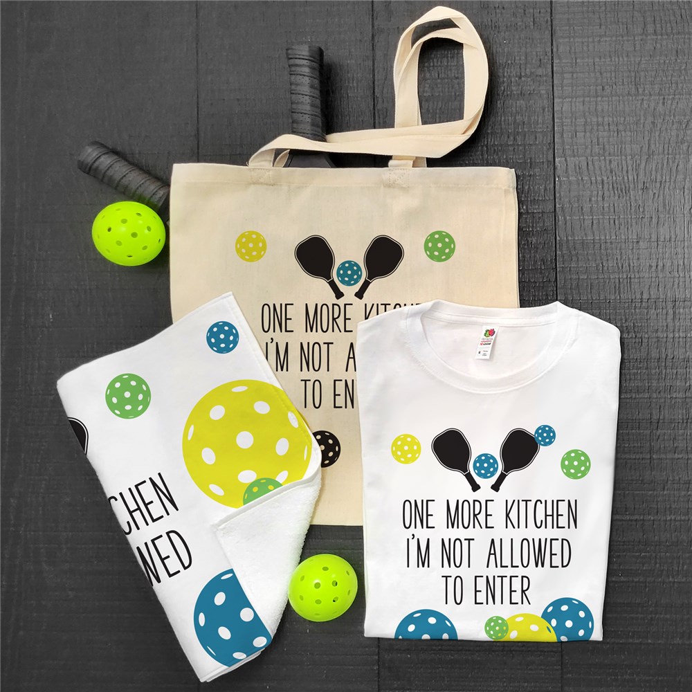 This 3 piece set includes a t-shirt to wear while playing or wherever they go, a towel that can serve as a dish towel in the kitchen or a hand towel on the court and a tote bag to carry all of these accessories plus your paddle and balls.