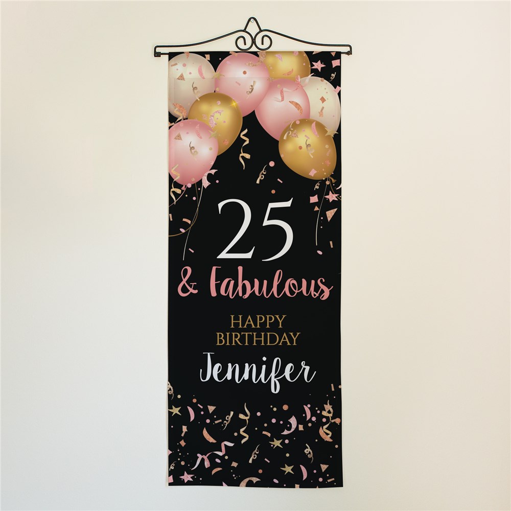 Personalized Pink, Gold & White Birthday Balloons Wall Hanging