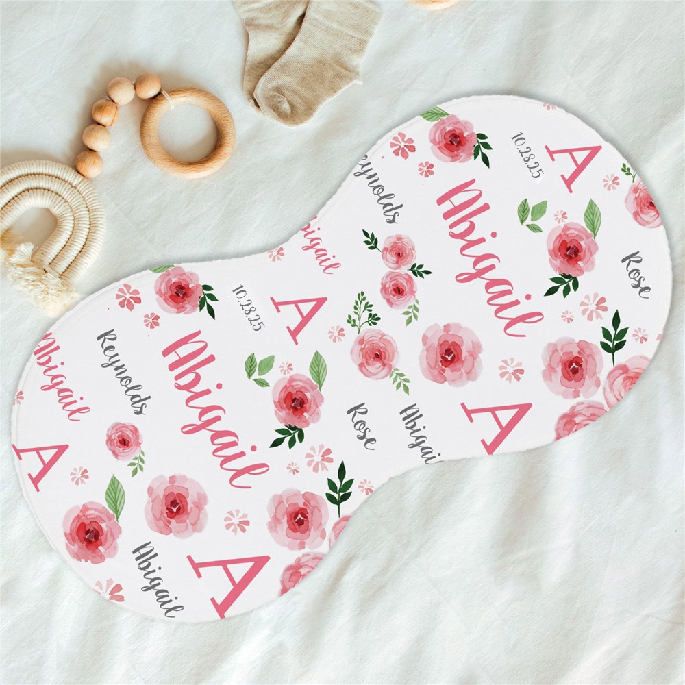 Personalize this adorable burp cloth with any initial, first, middle and last name and date.