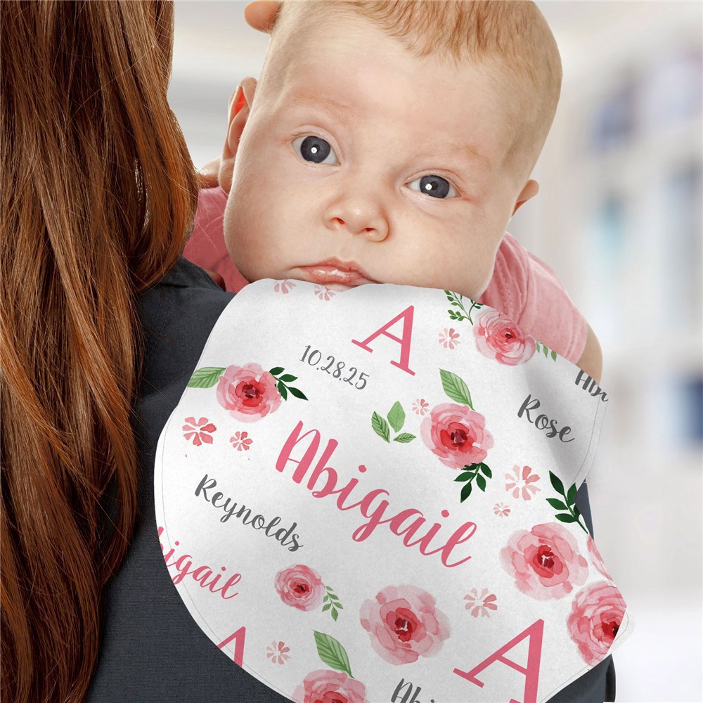 Parents of a new baby girl will appreciate our Personalized Pink Floral Baby Burp Cloth.