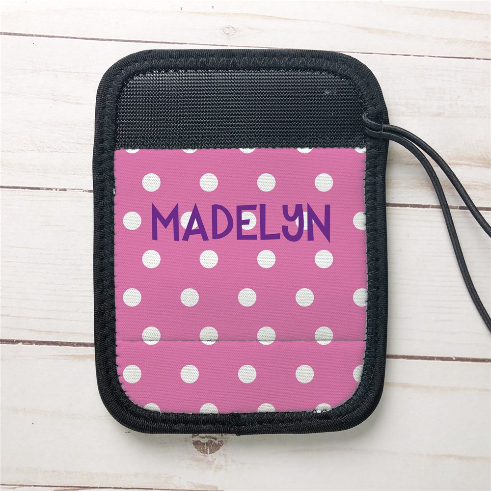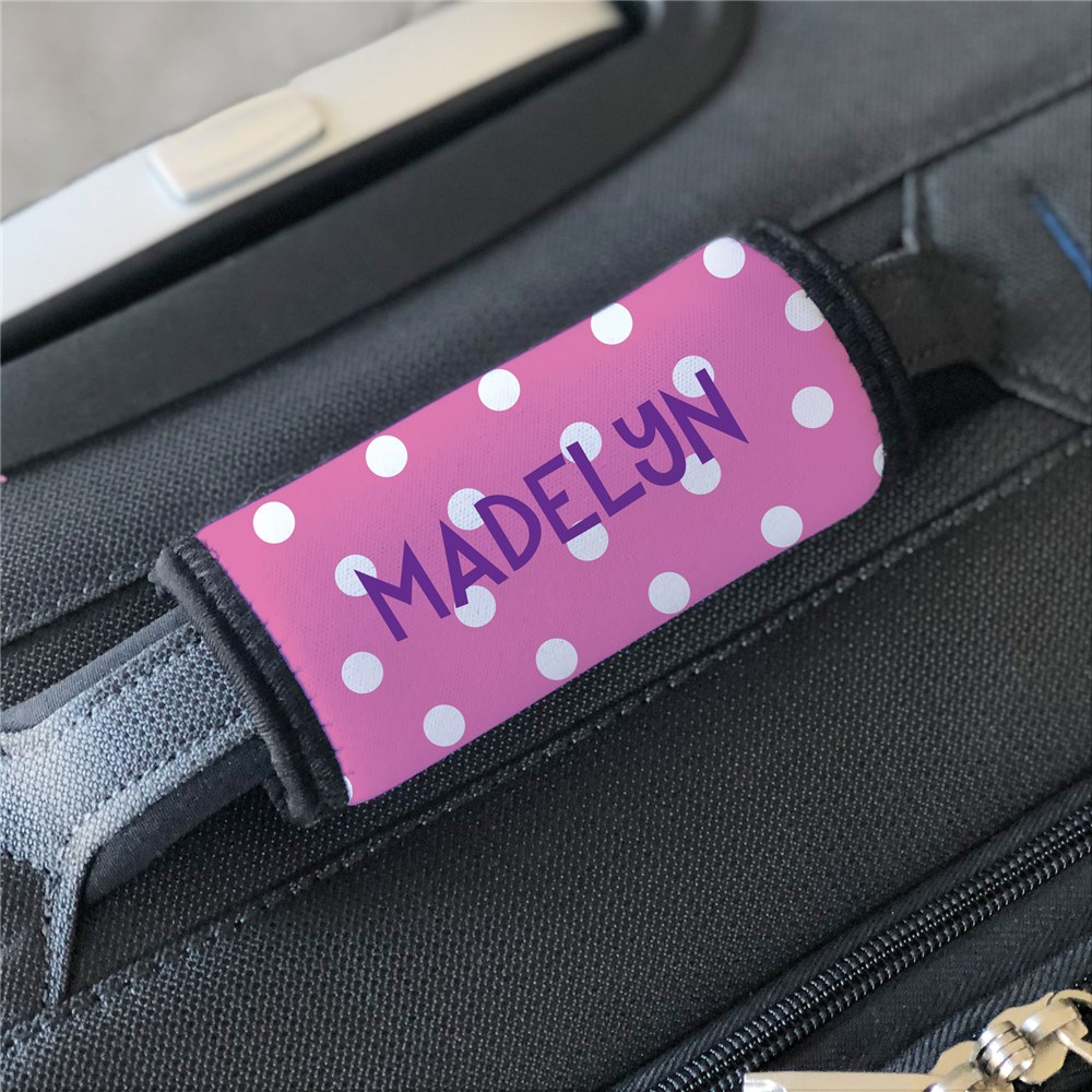 Easily grab your luggage off of the conveyor with our comfortable Personalized Pink Polka Dot Luggage Grip.