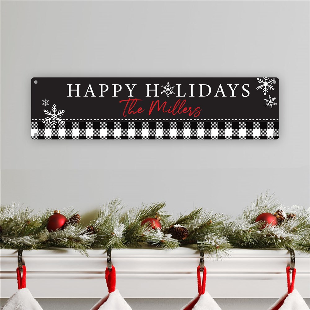Update your holiday decor with our Personalized Plaid Happy Holidays Sign.