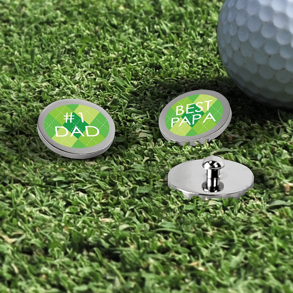 Add some classic style to the course with our Personalized Plaid Message Golf Ball Markers Set.Personalize this set with any two custom message lines, perfect for initials, nicknames, dates, or short phrases that pack a punch.