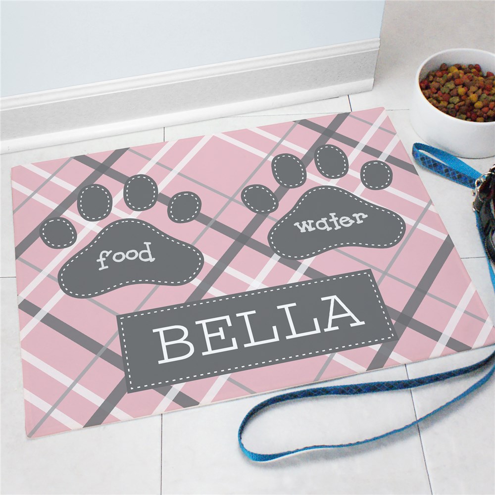 Personalized Plaid Pet Food Mat