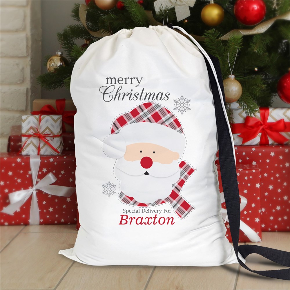 Personalized Plaid Santa Christmas Gift Sack