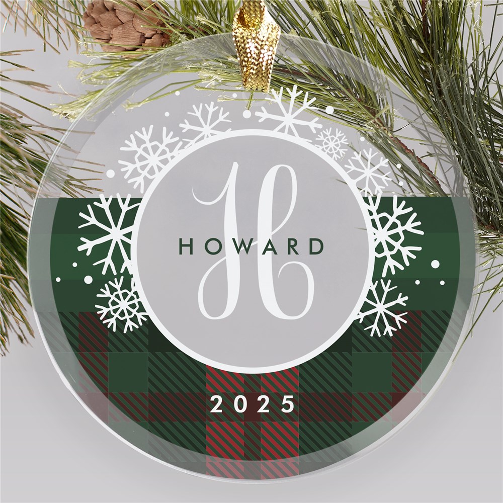Personalized Glass Ornament with Plaid PatternPersonalized Glass Ornament with Plaid Pattern
