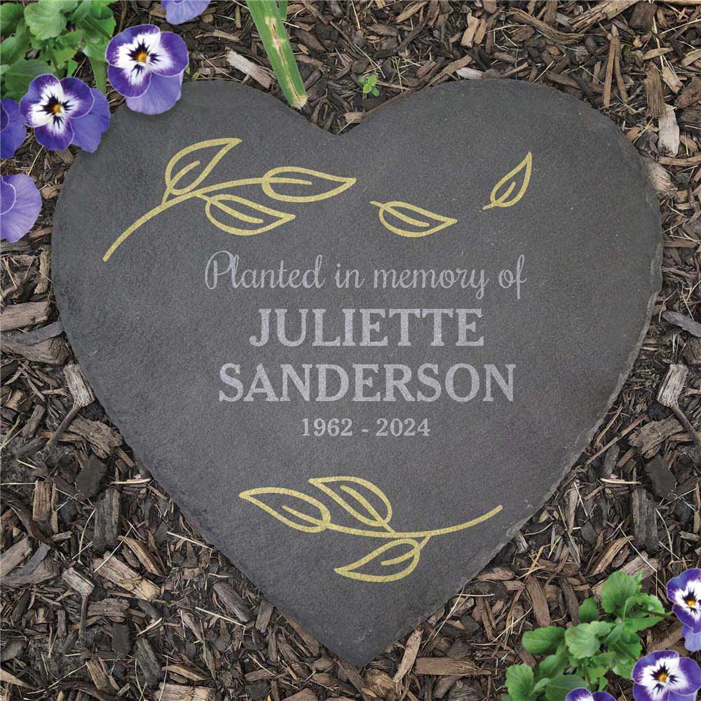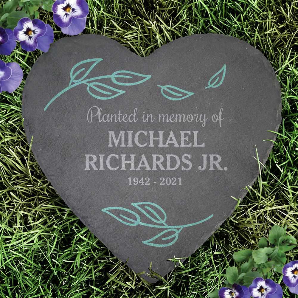 Pay tribute to your lost love one by planting something in their honor. Mark the site with our Personalized Planted In Memory Of Heart Slate Stone.