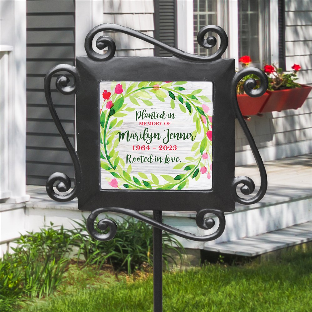 Personalized Planted In Memory Of With Bright Floral Wreath Garden Stake