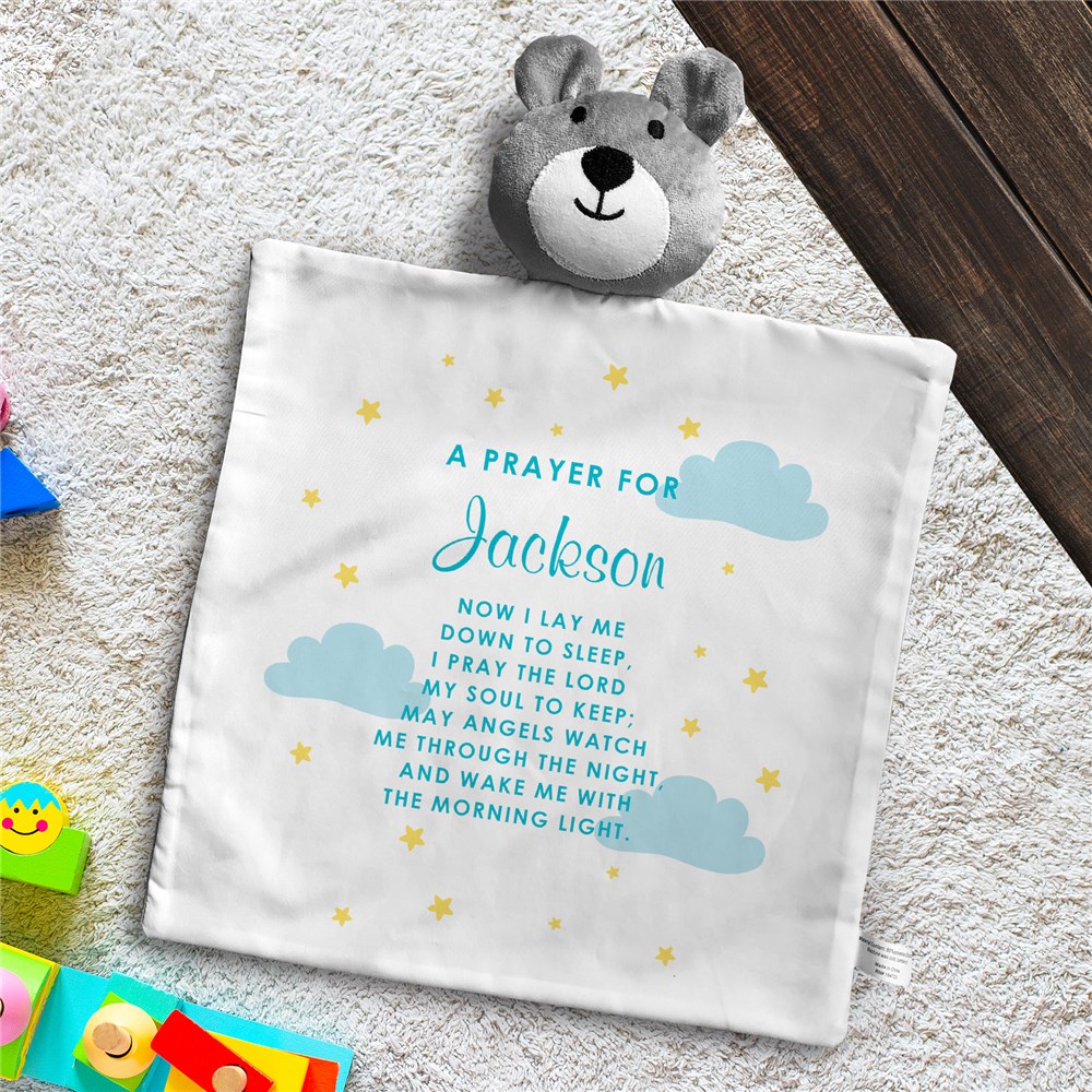 Our Personalized Prayer Bear Lovie is a special keepsake perfect for nap time, bedtime, or as a cherished gift.