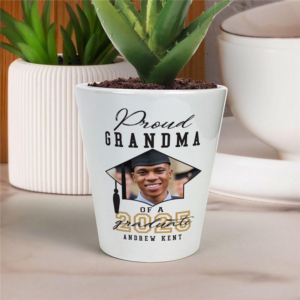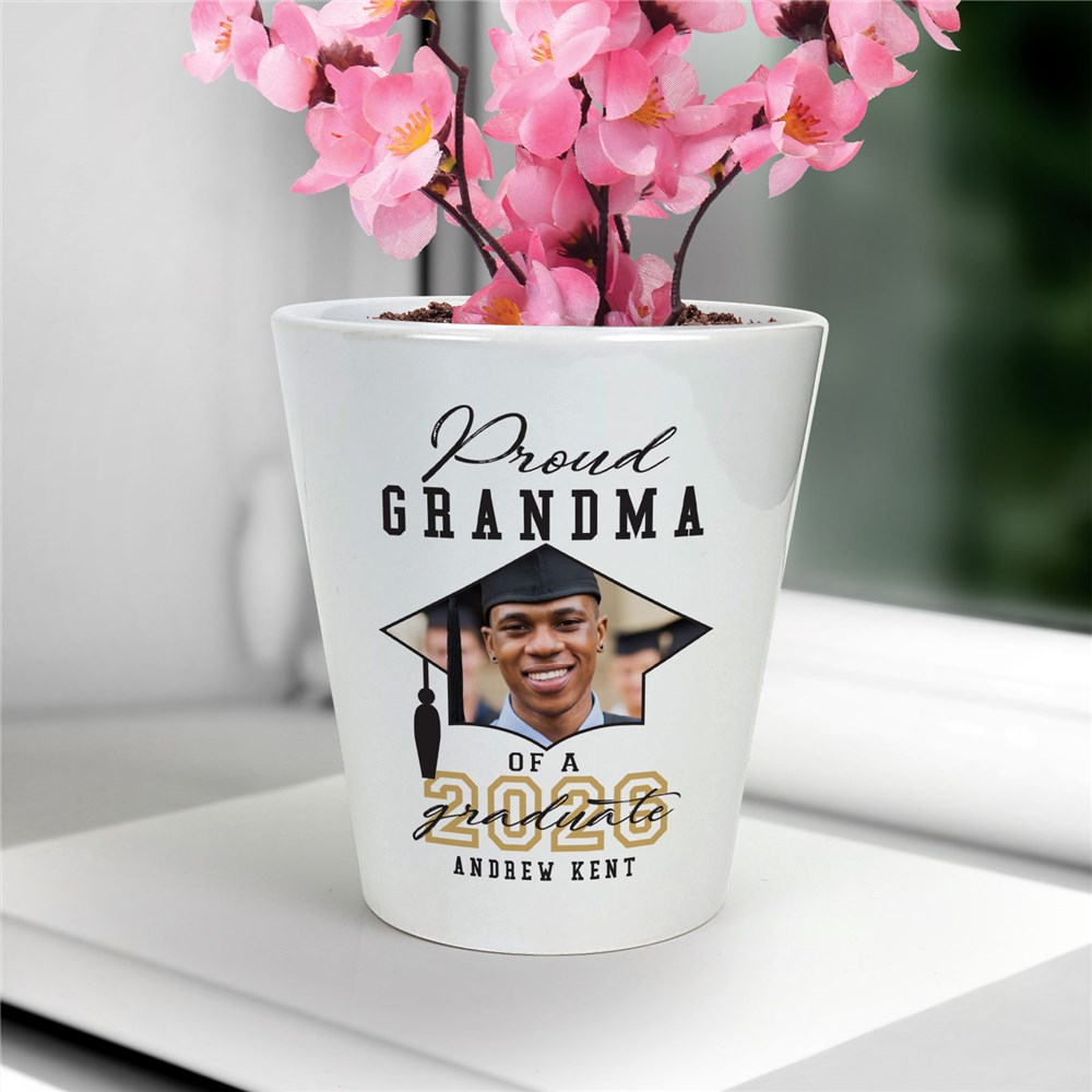 Celebrate the incredible achievement of your graduate with this Personalized Proud Family Grad Photo Ceramic Flower Pot, a perfect gift for any proud family member!Personalize this flower pot with any title, year, and name with your favorite photo.