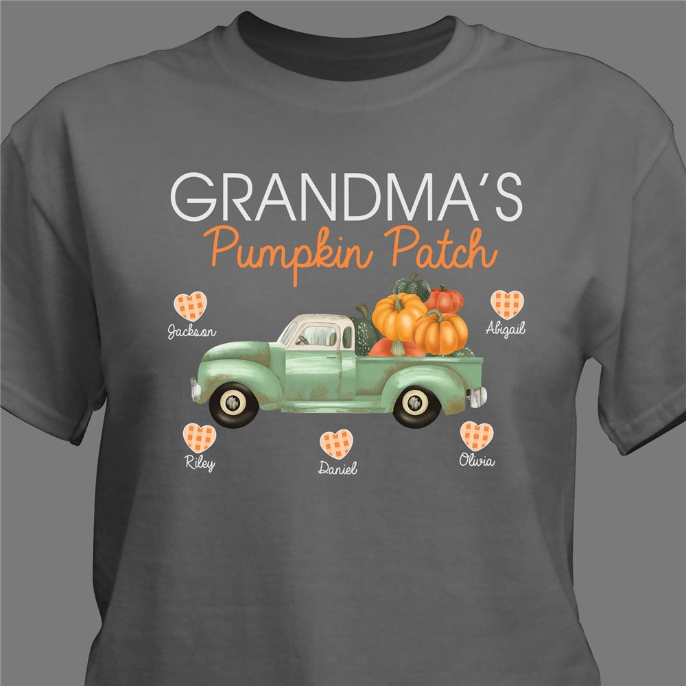 All her favorite little pumpkins will be displayed on our Personalized Pumpkin Patch T-Shirt.