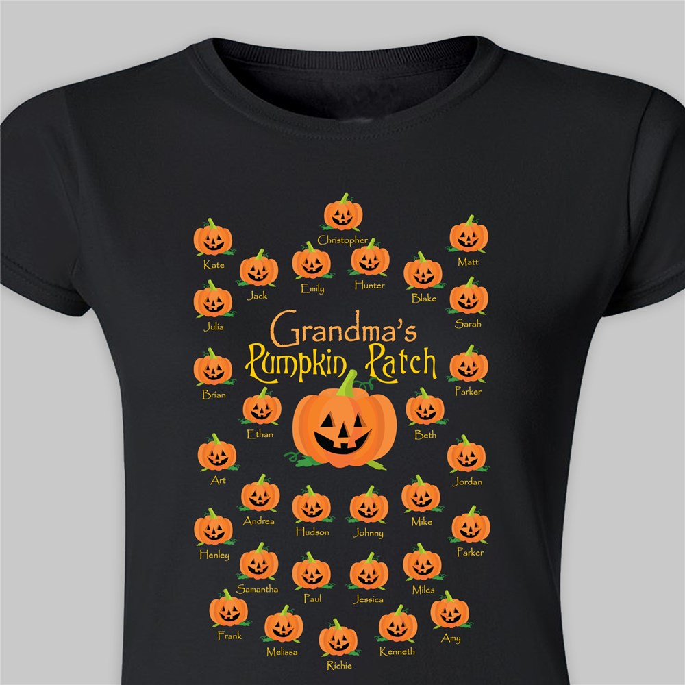 Show off all your little pumpkins as you take them door to door wearing this classic, Pumpkin Patch Personalized Halloween Shirts for Ladies. This Personalized Ladies T-shirt includes FREE Personalization! We will personalize this shirt with any title and up to 30 names.