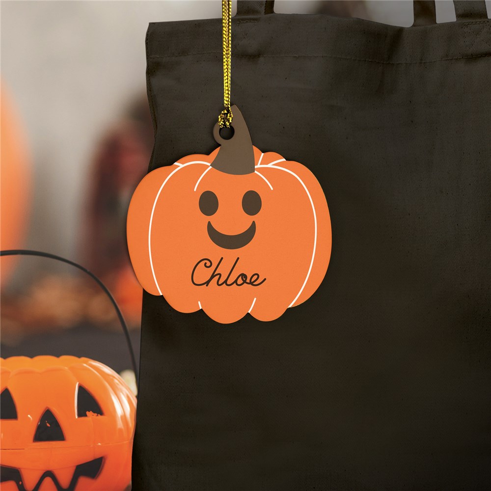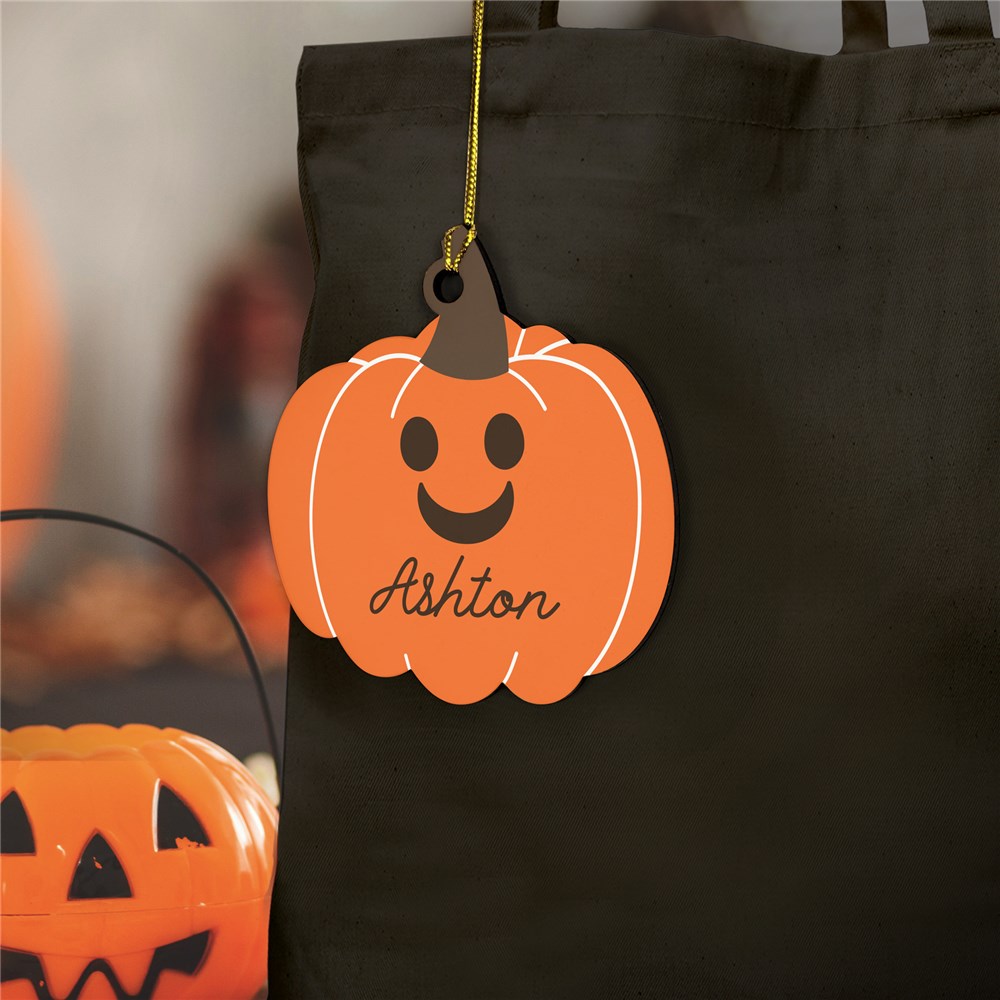 Our adorable Personalized Pumpkin Wood Halloween Basket Tag is the cutest accessory to add to any bag or basket for trick or treating.