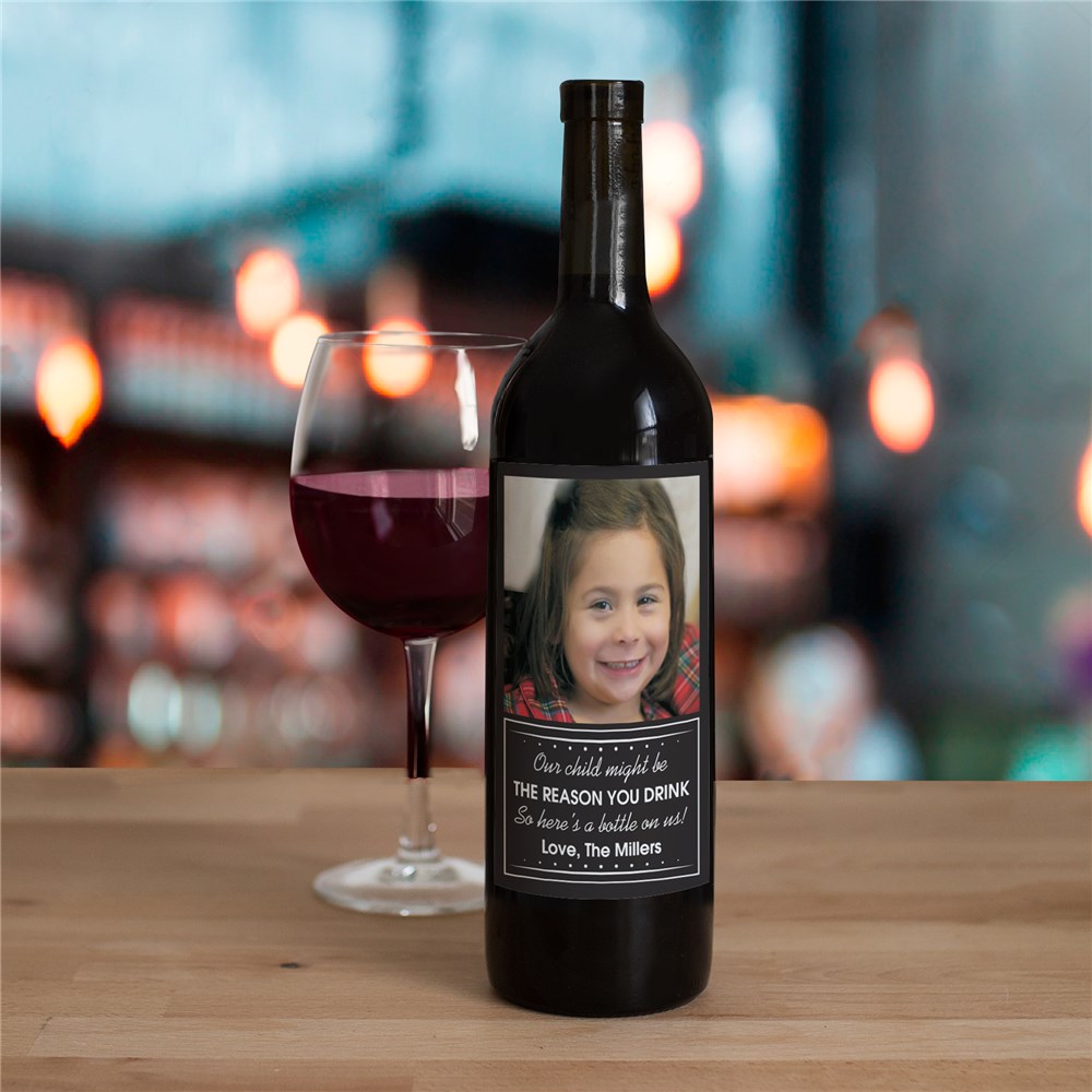Add these fun personalized reason you drink wine bottle labels to your favorite bottle of wine or beverage to give this holiday season especially as personalized teacher gifts. Our photo design may be personalized with any favorite photo of "the reason" above your choice of "my" or "our" child is the reason...phrase, and any two line custom message below for a gift that will be appreciated by all. Choose your label quantity when ordering. Buy Personalized Gifts For Teachers Today!