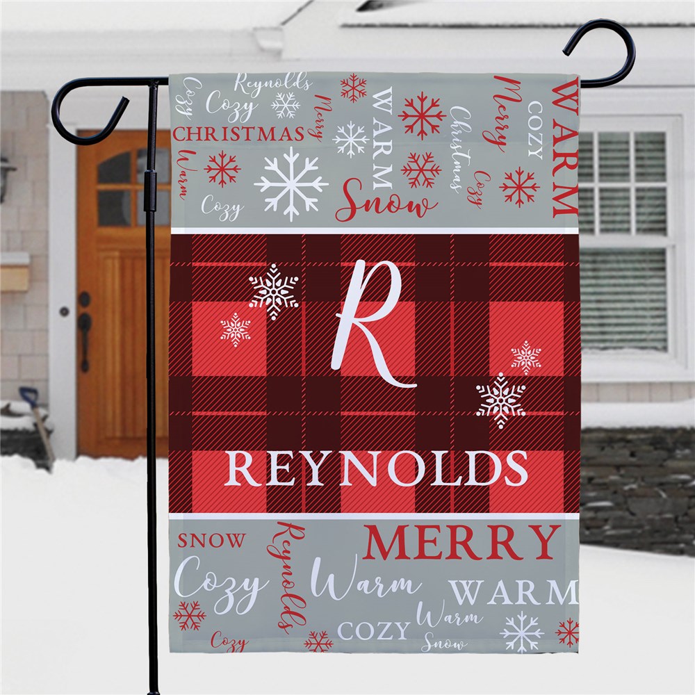 Give guests a warm welcome to your home this holiday season with our Personalized Red Plaid Word Art Garden Flag.