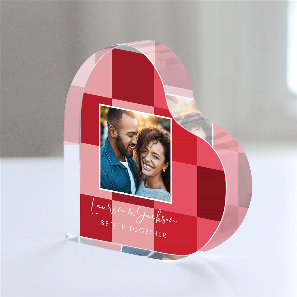 Turn a special memory into a lasting treasure with our Personalized Red Squares Large Acrylic Heart Keepsake.