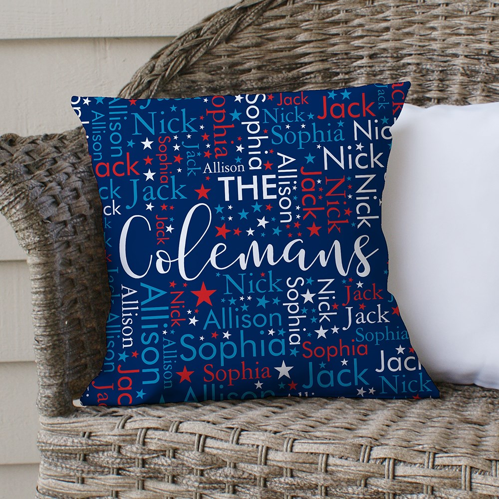 This American pride pillow can be personalized using our word art tool with any family name, words and symbols you choose.