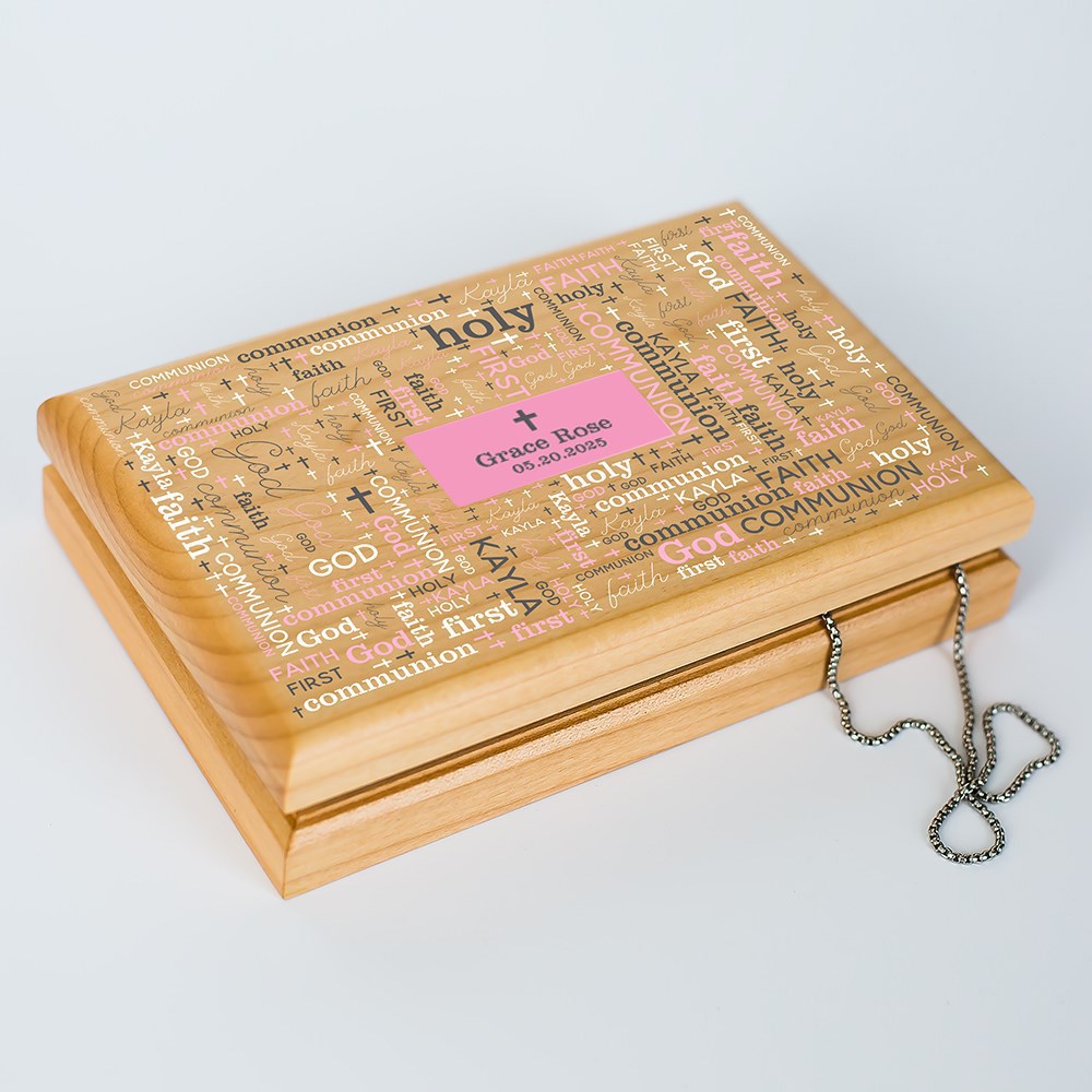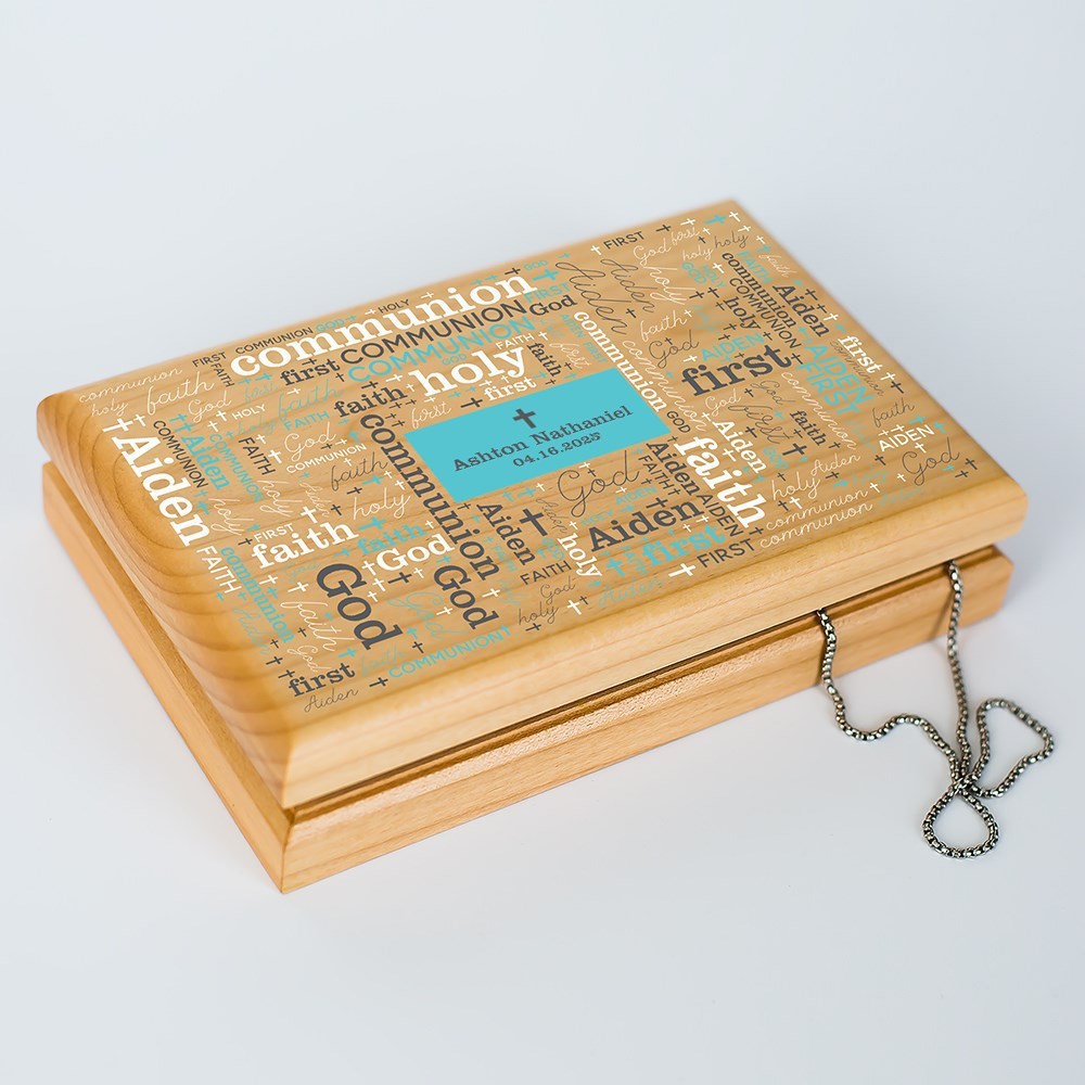 Our Personalized Religious Word Art Valet Box is a wonderful gift for any child completing their first communion.