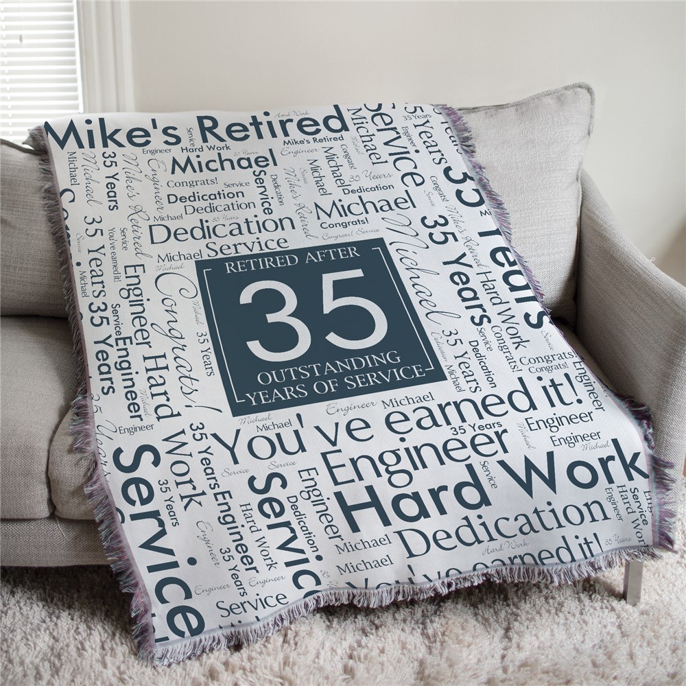 Show your gratitude for a retiring coworker or employee with our Personalized Retired After Years of Service Word Art Afghan Throw.