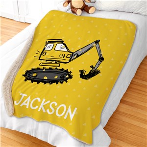 .Personalized Yellow Construction Truck Sherpa Blanket