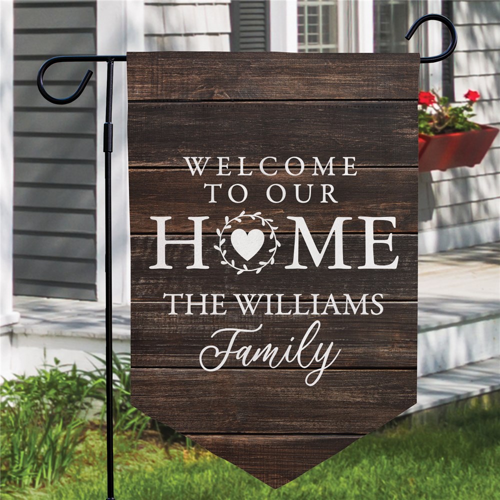 Welcome to Our Home Personalized Rustic Pennant Garden Flag