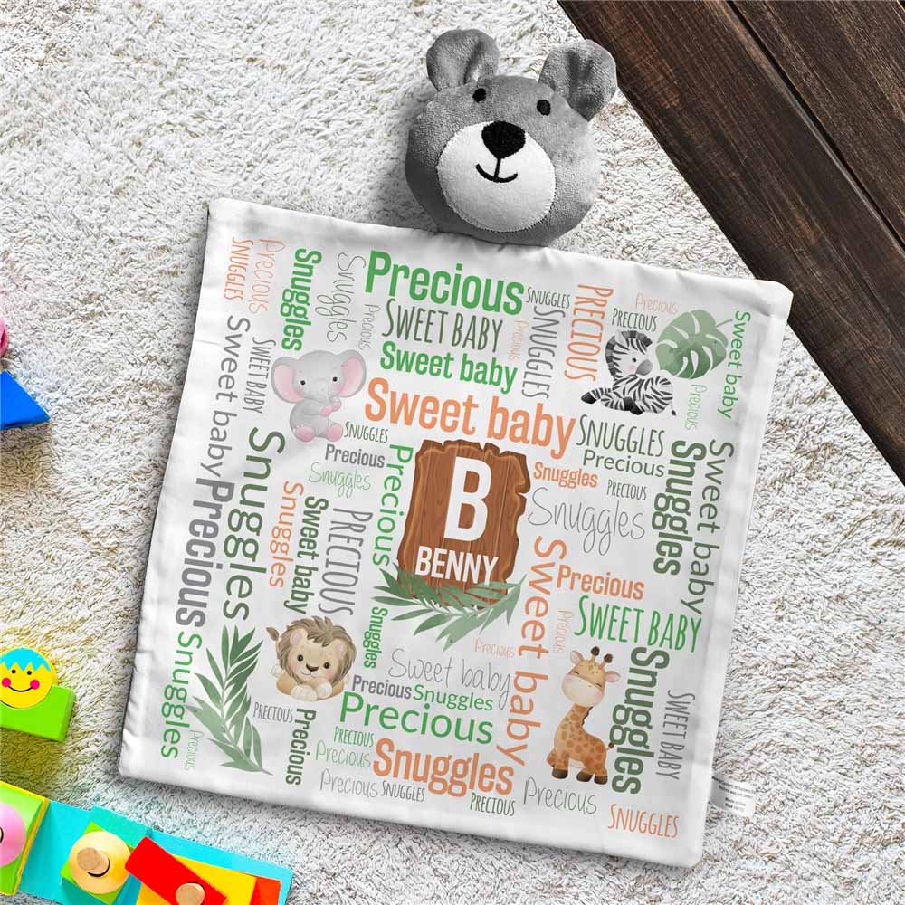 Give your baby our Personalized Safari Baby Word Art Bear Lovie to sleep and cuddle with!Use our word art tool to personalize this baby gift with any name, words, and symbols.