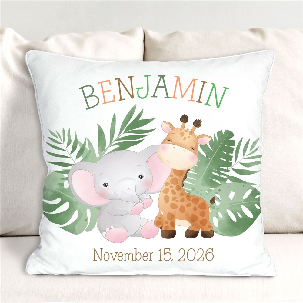 Personalized Safari Throw Pillow with Baby's Name and Birthdate