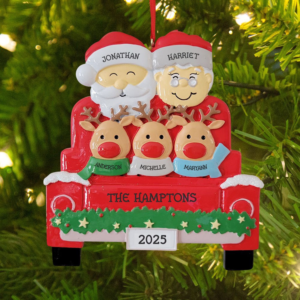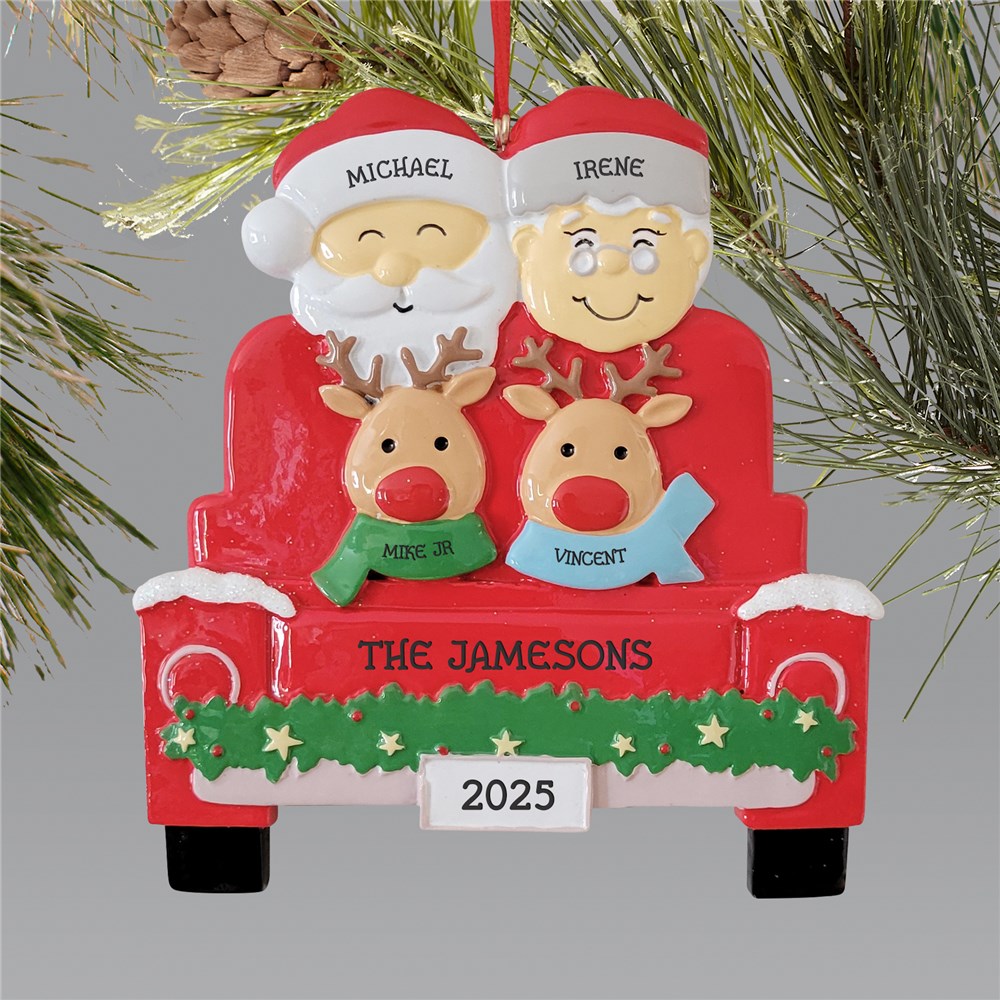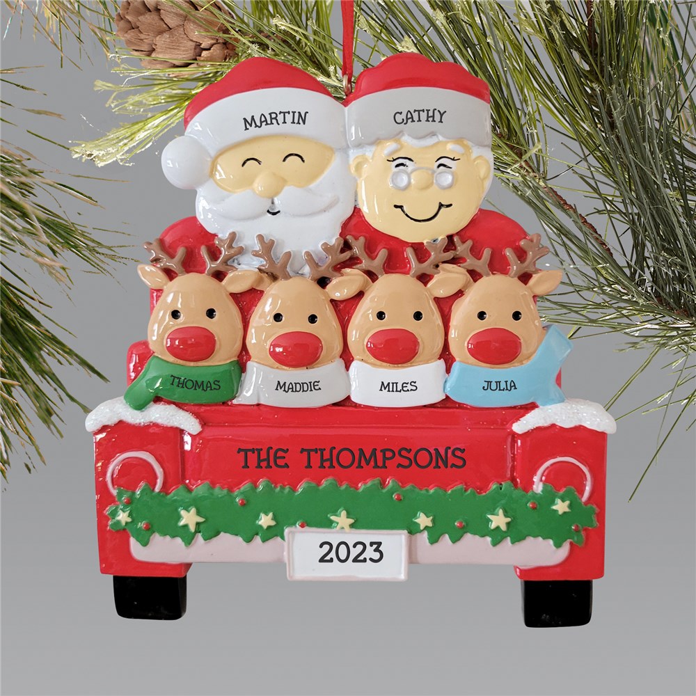 Our Personalized Santa and Reindeer Family Ornament is a cute and creative addition to your family's ornament collection.