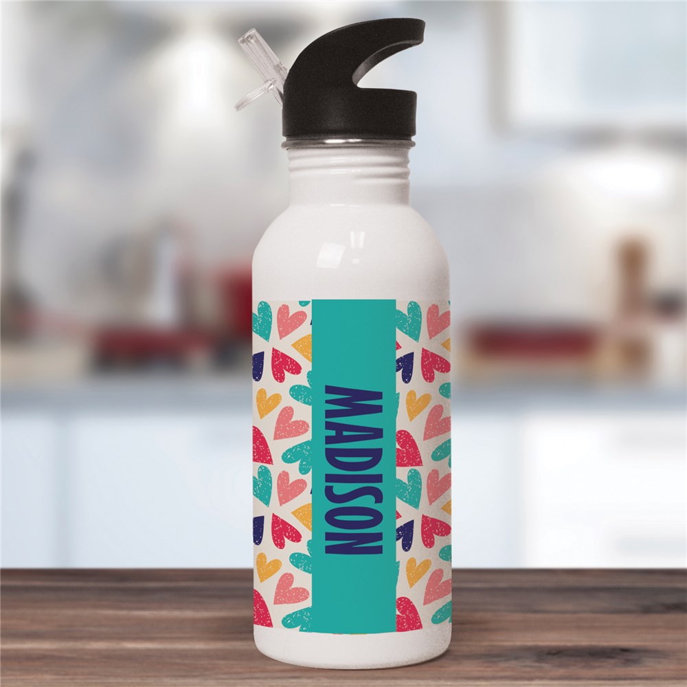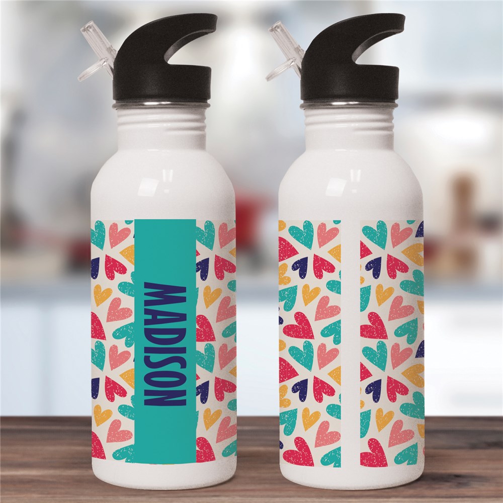 Your child will love to bring our Personalized Scattered Hearts and Name Water Bottle with them to school.