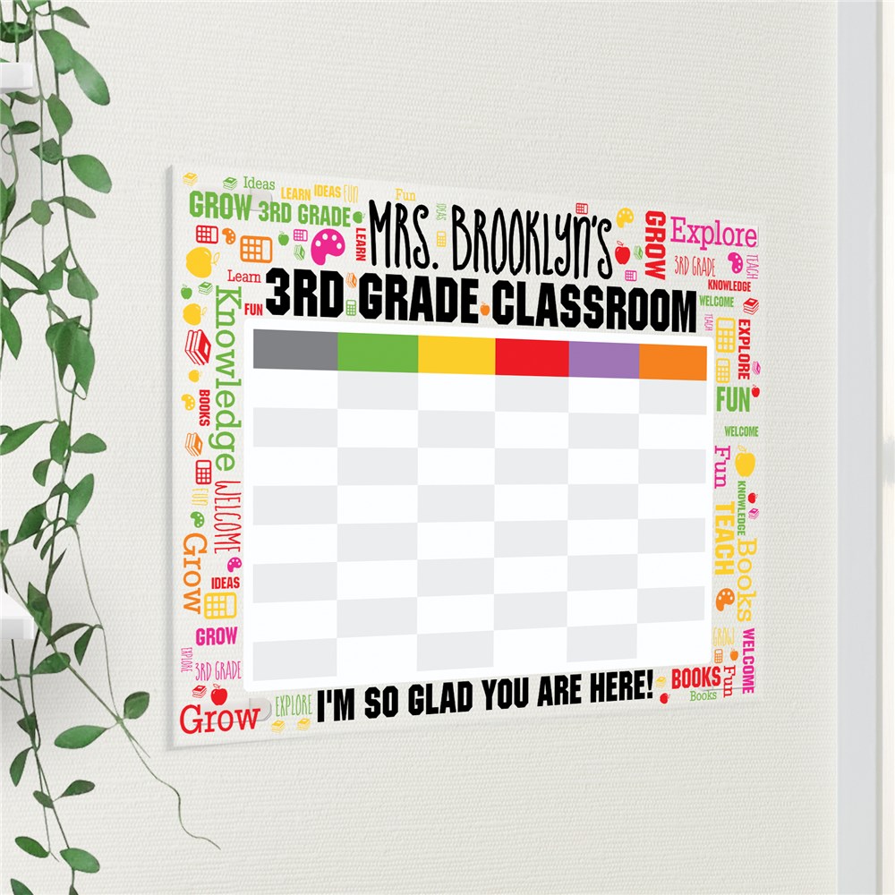 Add the finishing touches to your classroom with our Personalized School Day Schedule Word Art Calendar Acrylic Sign!