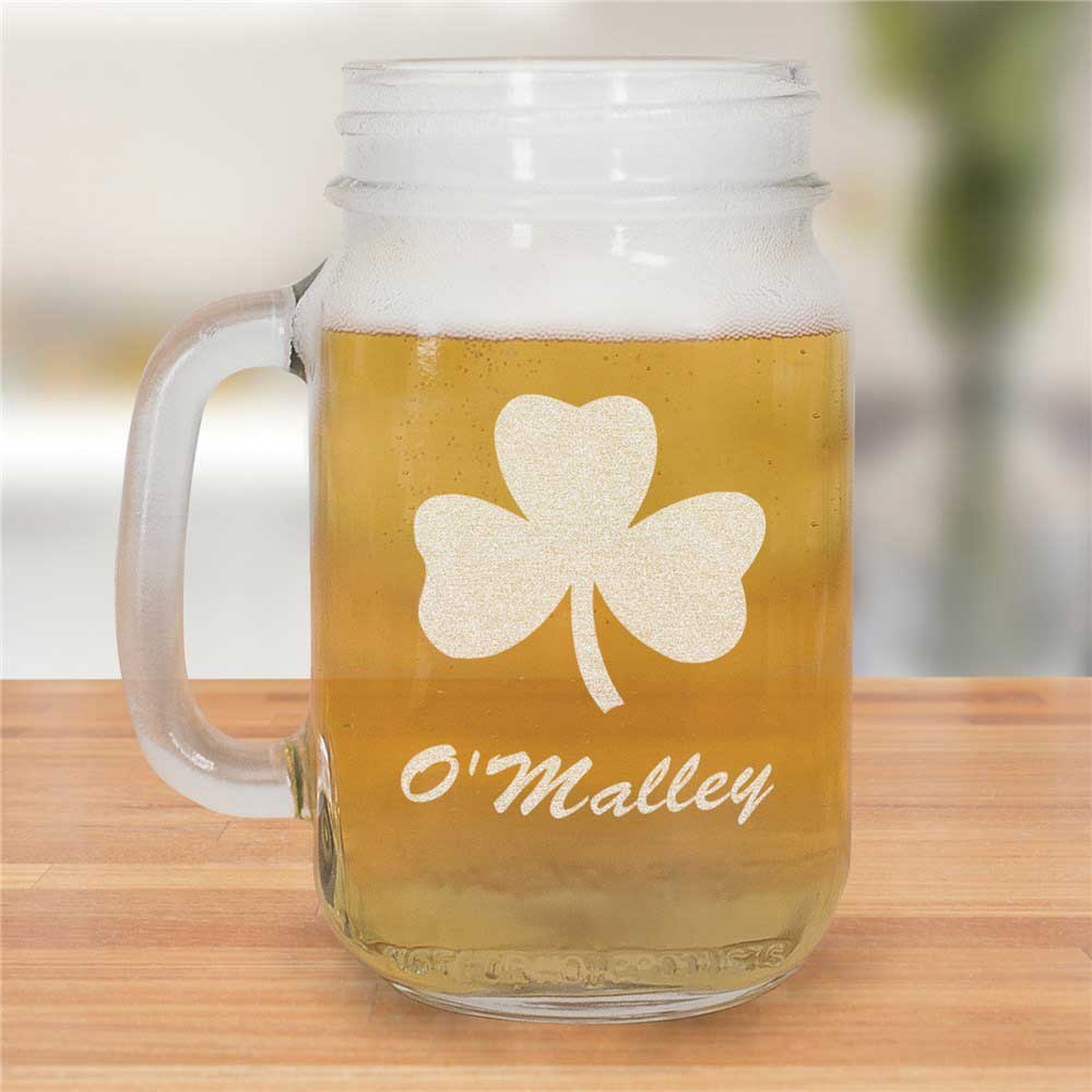 Shamrock Personalized Gift Set With Shirt, Bottle Opener, & Mason Jar