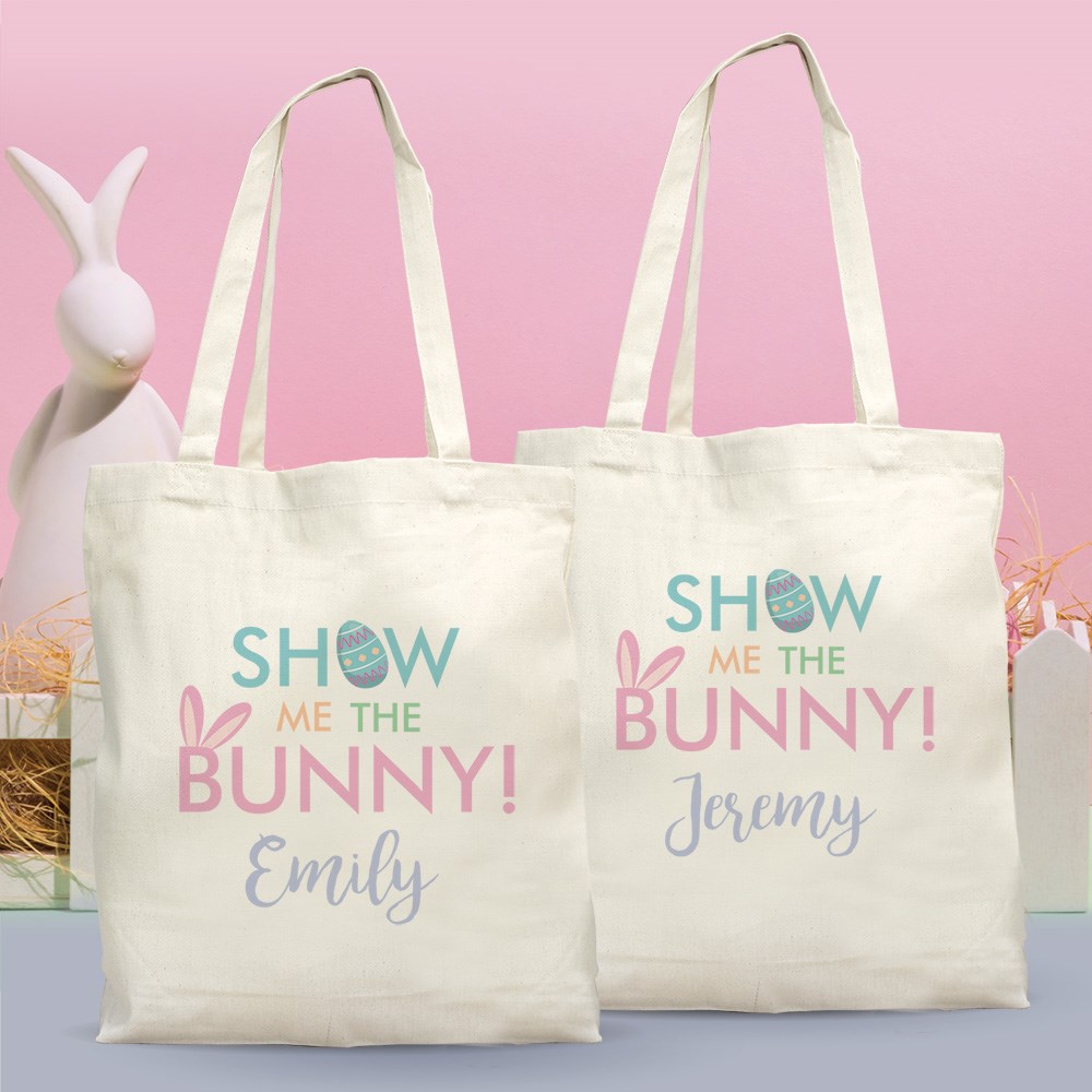 Your little one can hop into Easter with our Personalized Show Me The Bunny Easter Tote Bag.