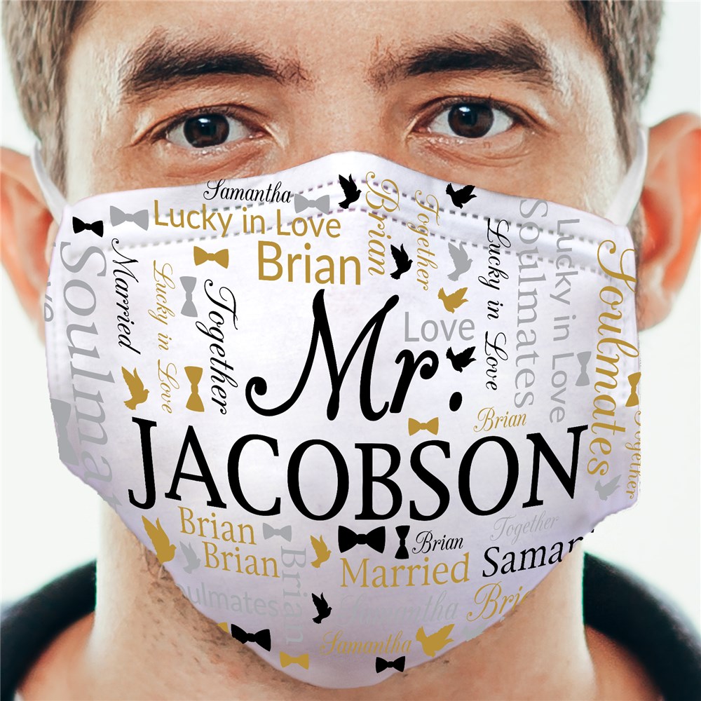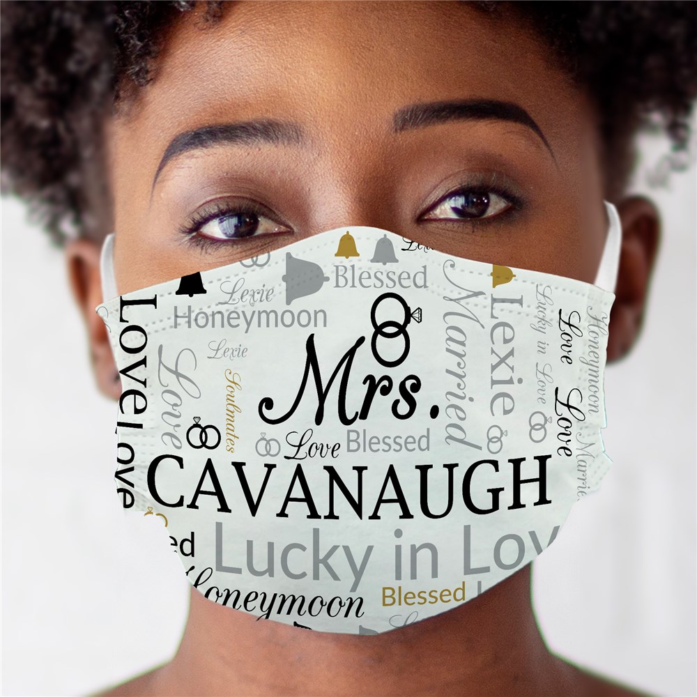 Our Personalized Silver & Gold Wedding Word Art Face Mask is great for newlyweds on their big day!