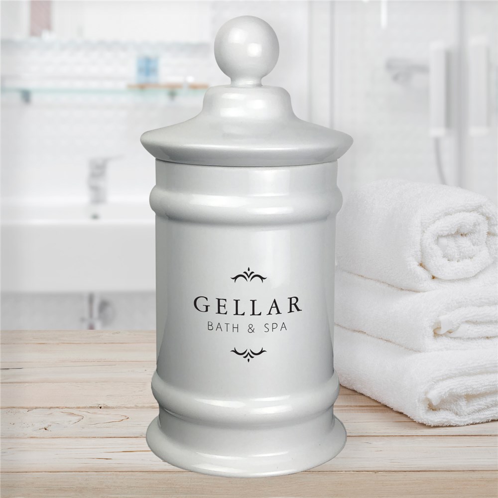 Give your bathroom a special finishing touch with our Personalized Simple Filigree with Last Name Apothecary Jar.