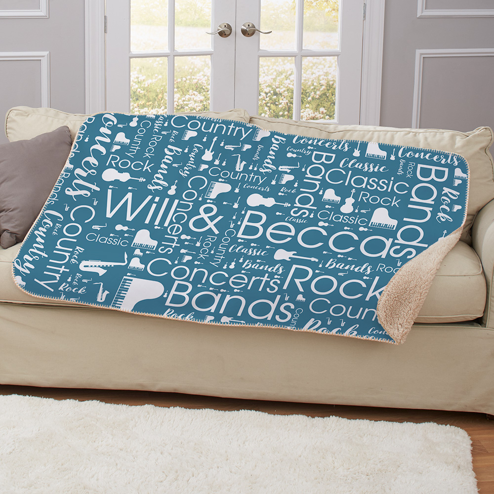 Stay in for the night with our Personalized Single Color Word Art Sherpa Blanket.