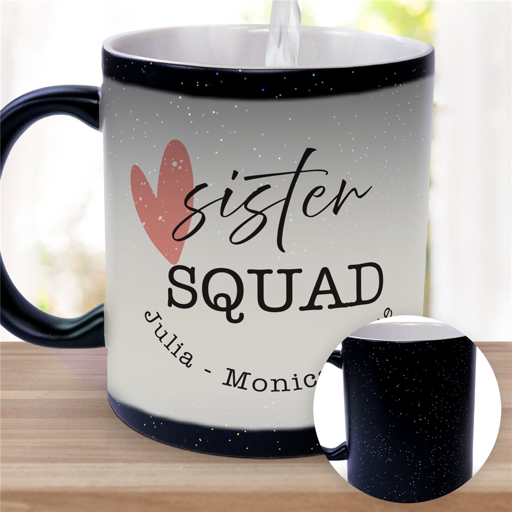 Get together for morning coffee with your sisters using our Personalized Sister Squad Color Changing Mug!