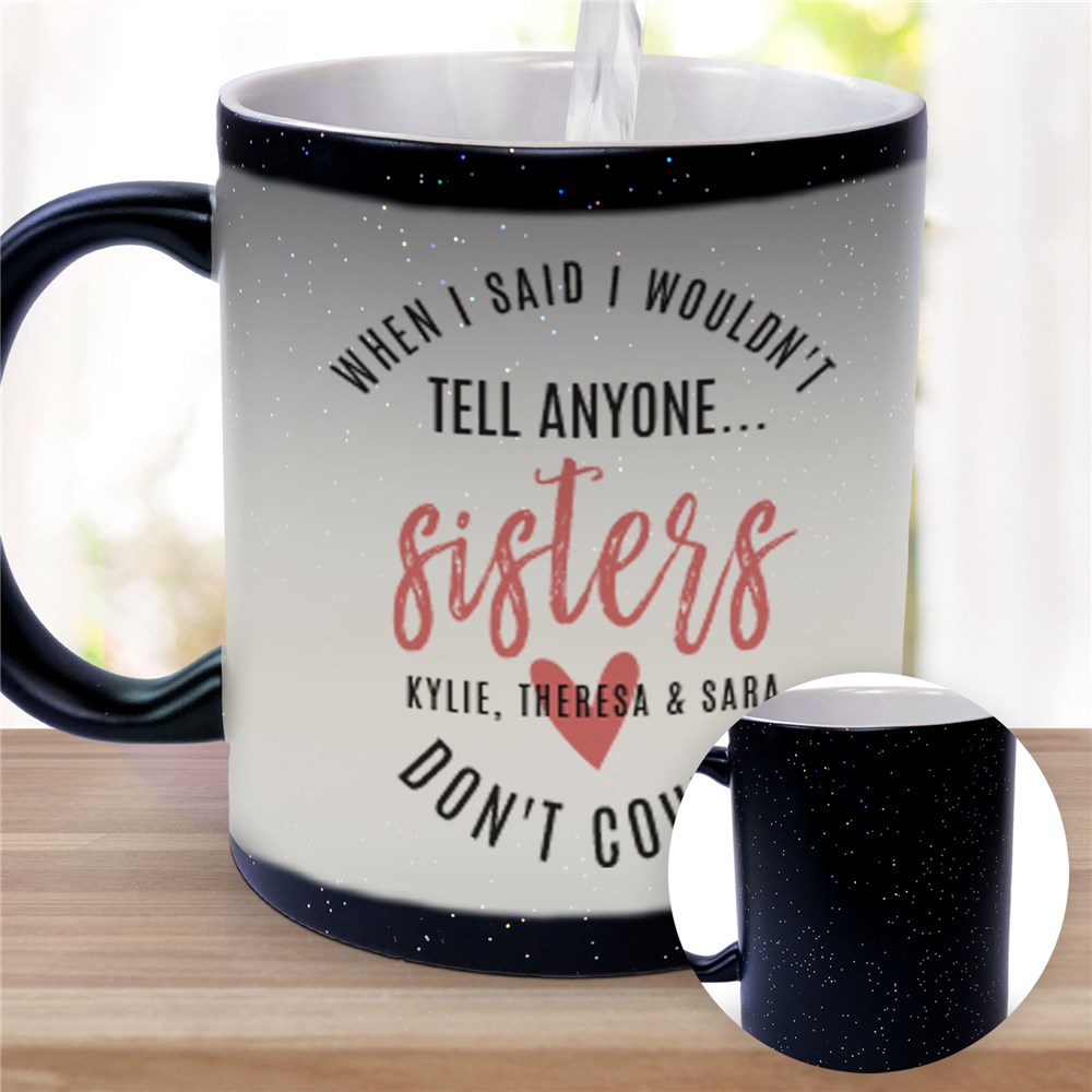 If you and your sister tell each other everything, then our Personalized Sisters Don't Count Color Changing Mug is a must have addition to your drinkware!