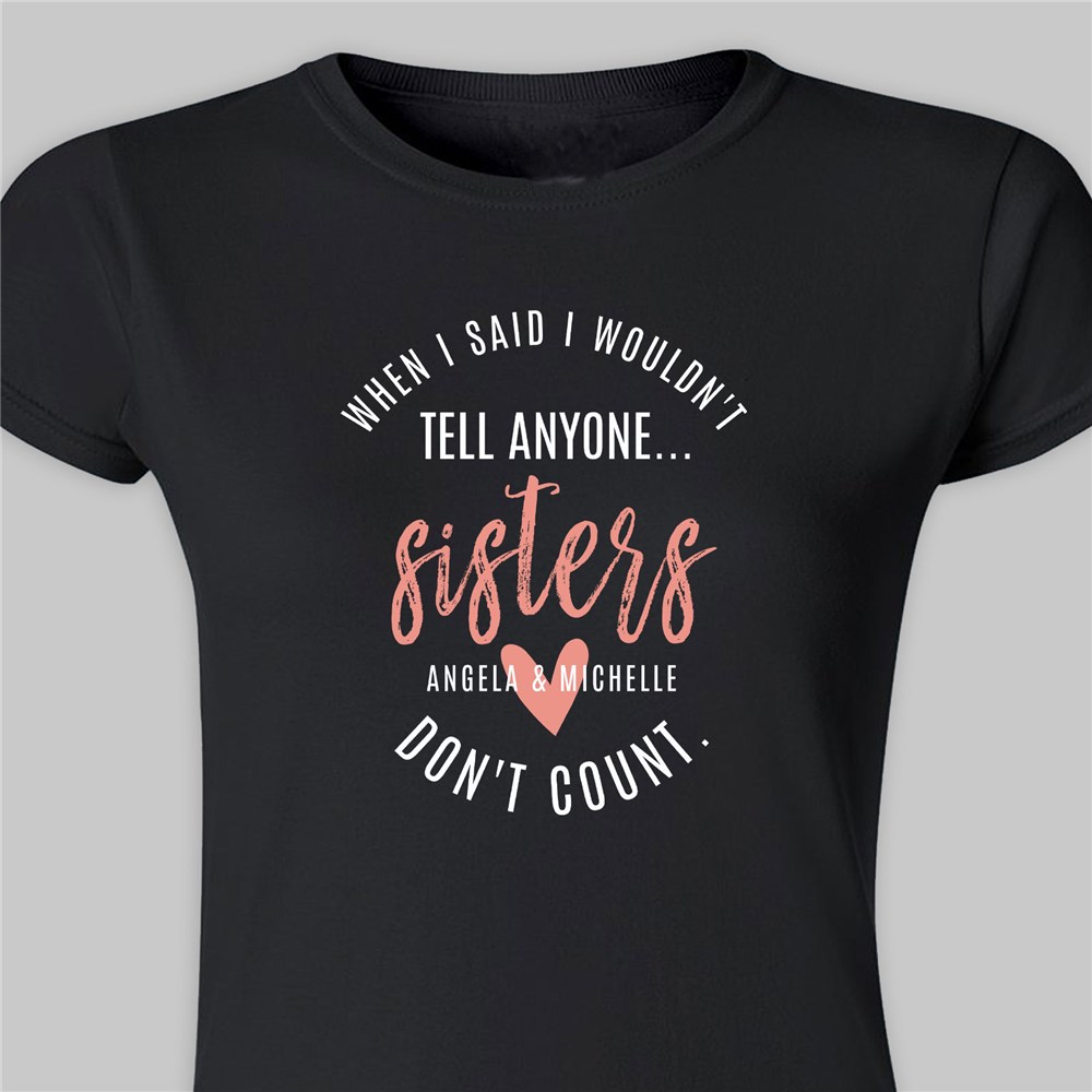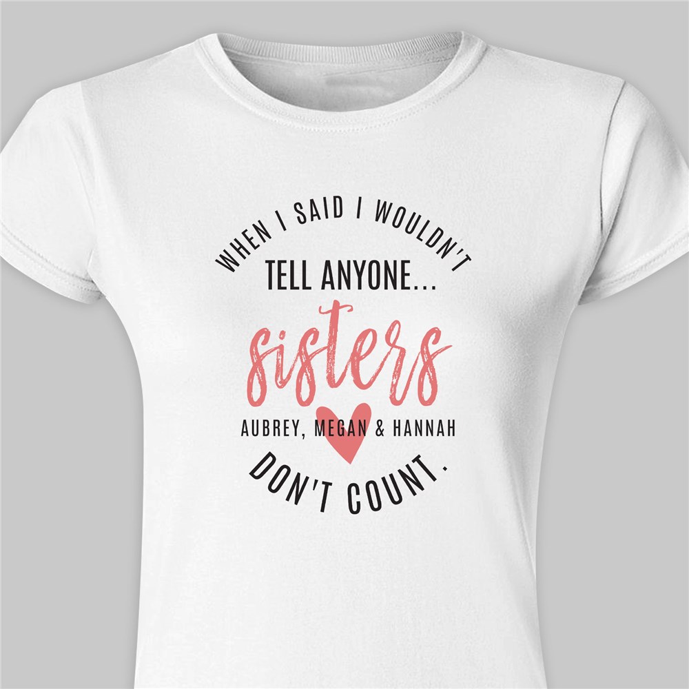 Our Personalized Sisters Don't Count Women's Fitted T-Shirt is a must have for sisters who don't keep secrets from each other!