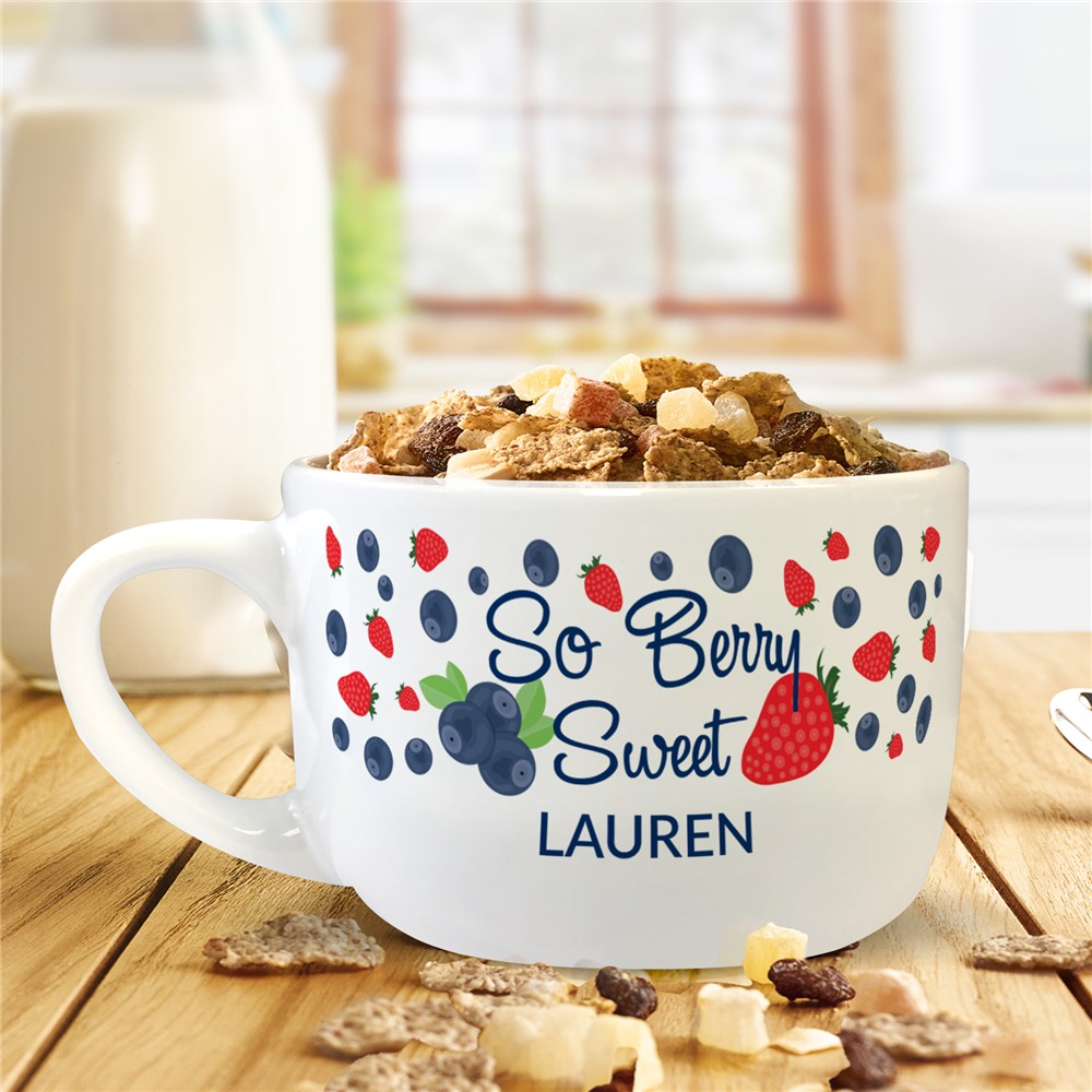 Start your morning off with a tasty bowl of fruit served with oatmeal or cereal in our Personalized So Berry Sweet with Handle.