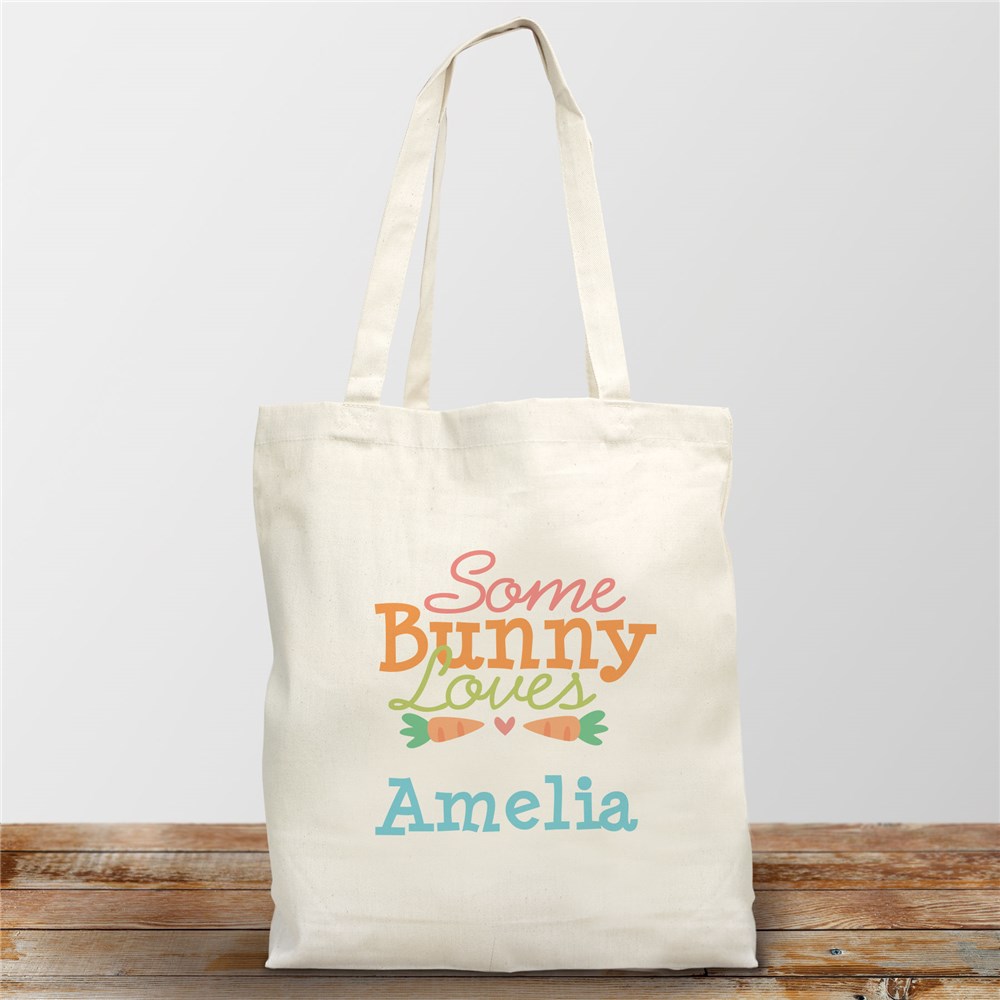 Show your little one how much they are loved this Easter with our Personalized Somebunny Loves Me Easter Tote Bag.