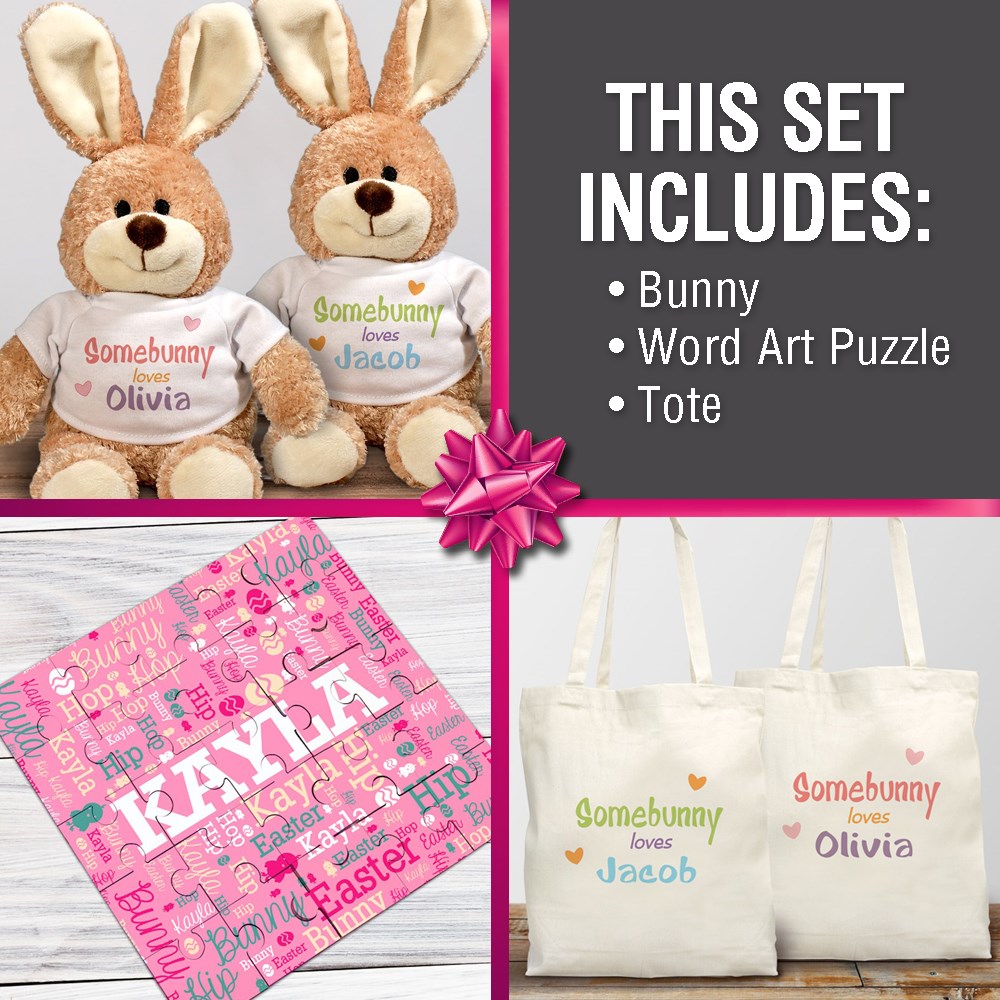Easter Gift Set With Personalized Bunny, Puzzle, & Tote Bag