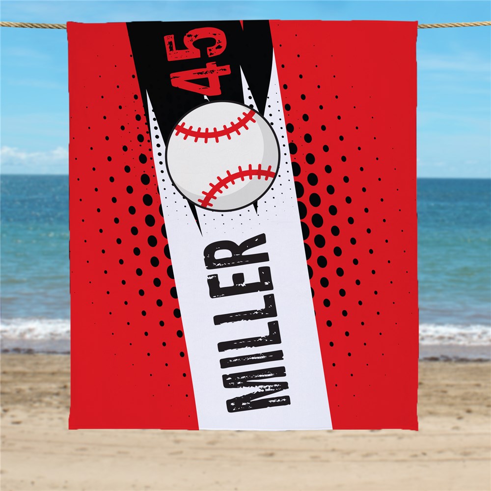 Show off their favorite sport by personalizing this towel with your choice of background color, sport, their name, and number (optional).