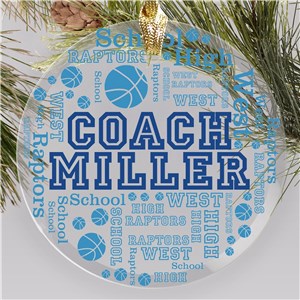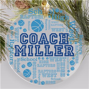 .Personalized Sports Coach Word-Art Glass Ornament