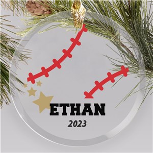 .Personalized Sports Ball Name And Year Round Glass Ornament